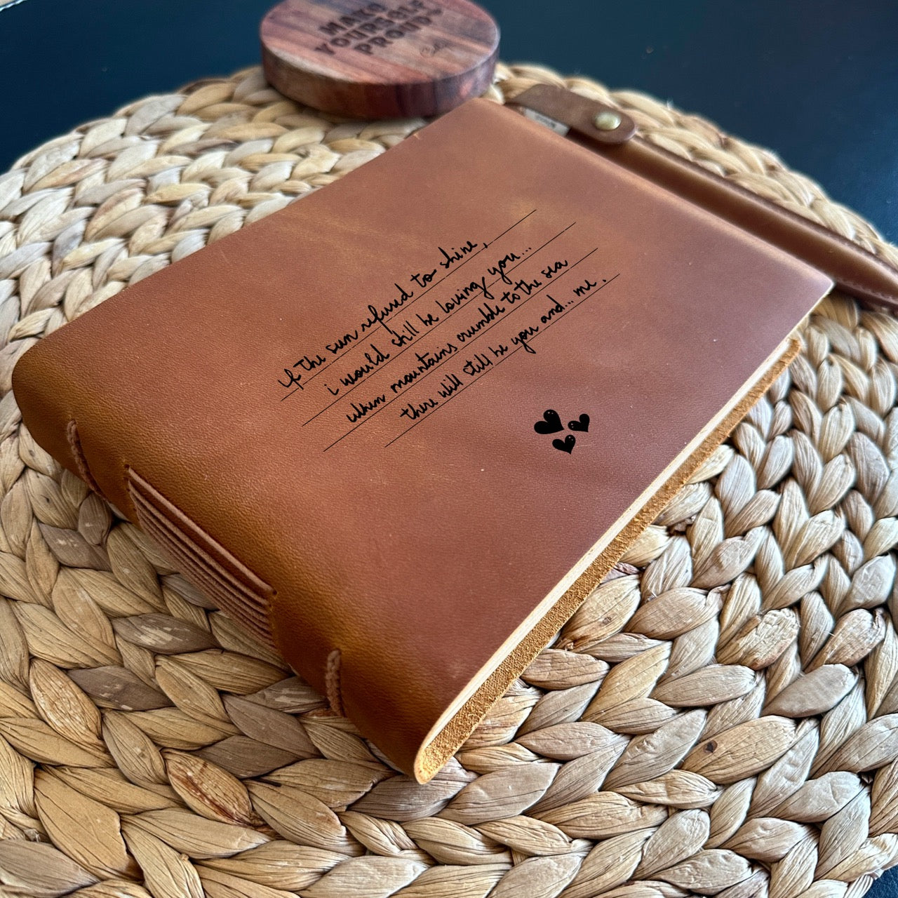 Add a personal touch with custom engraving. Upload your handwritten message, sketch, or your child’s artwork, and we’ll engrave it onto your leather notebook or personalised gift. A one-of-a-kind keepsake made just for you — heartfelt, lasting, and uniquely yours.