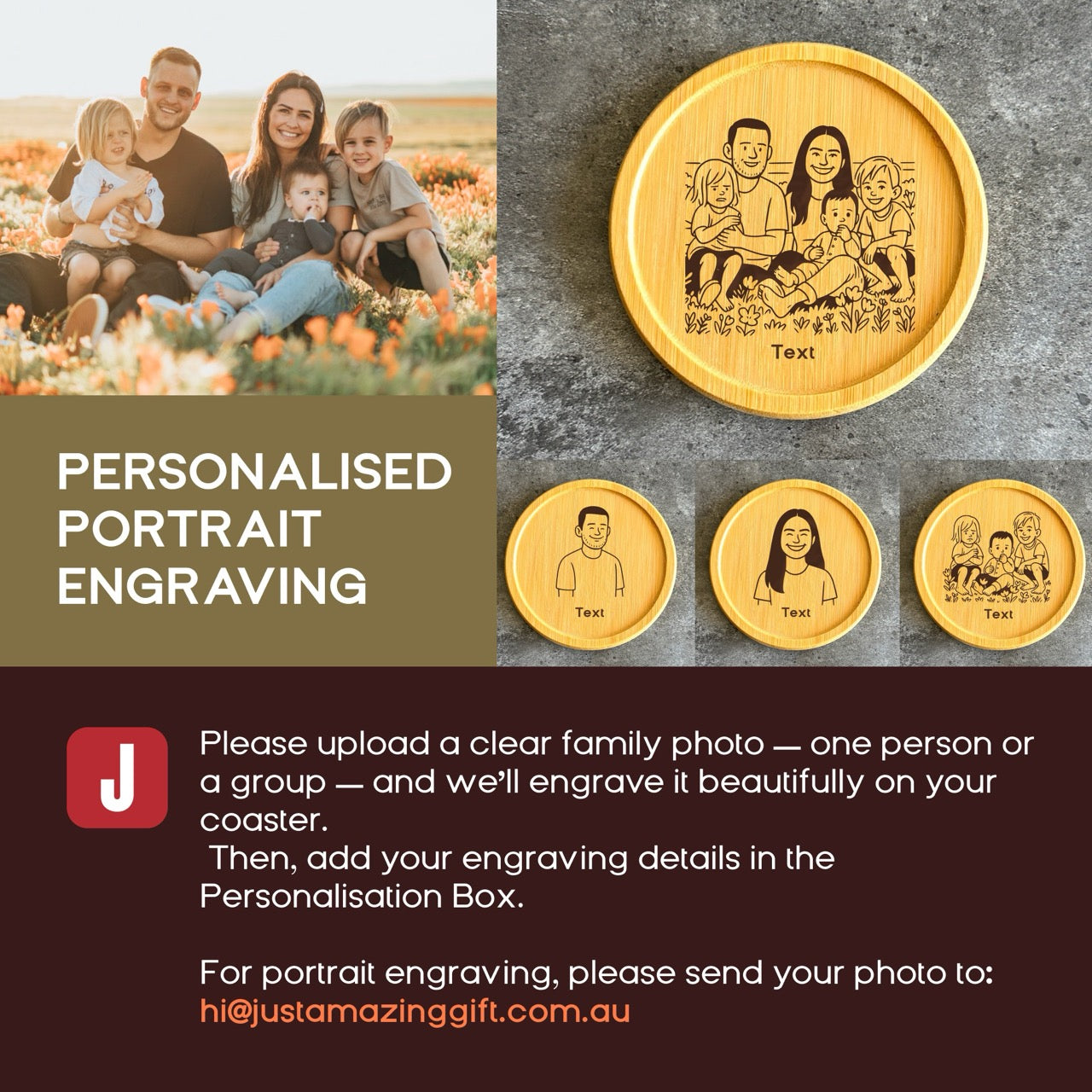 "Portrait of Us" Custom Couples Portrait Wooden Coasters - Personalised Love Keepsakes